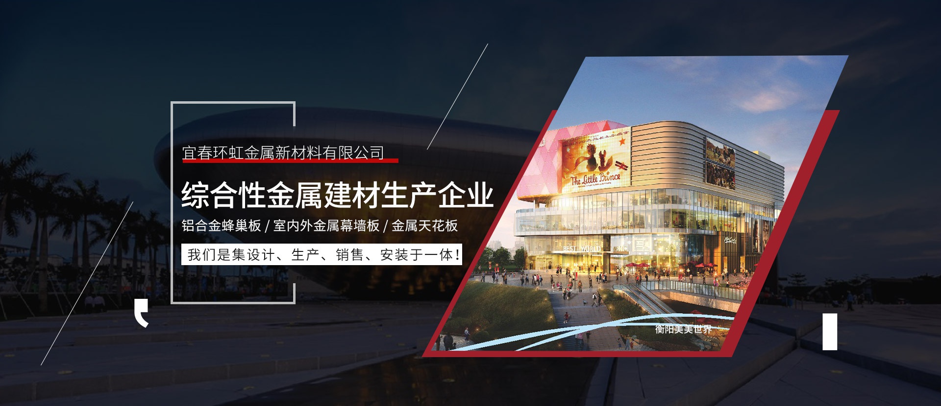 宜春環(huán)虹金屬新材料有限公司總部位于廣東省佛山市創(chuàng)立于2011年。公司建設(shè)有高標(biāo)準(zhǔn)的現(xiàn)代化工業(yè)生產(chǎn)廠房及完備的生活配套設(shè)施,是一家生產(chǎn)鋁單板、鋁合金蜂窩板、室內(nèi)外金屬幕墻板、金屬天花板等新型建筑裝飾材料的現(xiàn)代化企業(yè)。從產(chǎn)品設(shè)計(jì)到生產(chǎn)檢驗(yàn)、施工安裝及服務(wù)都嚴(yán)格按照ISO09001和ISO14001 2015質(zhì)量與環(huán)境保證體系實(shí)行嚴(yán)格的控制和管理,并著力為客戶提供優(yōu)良的個(gè)性化服務(wù)和相關(guān)解決方案。公司擁有一批高素質(zhì)、高水平的...